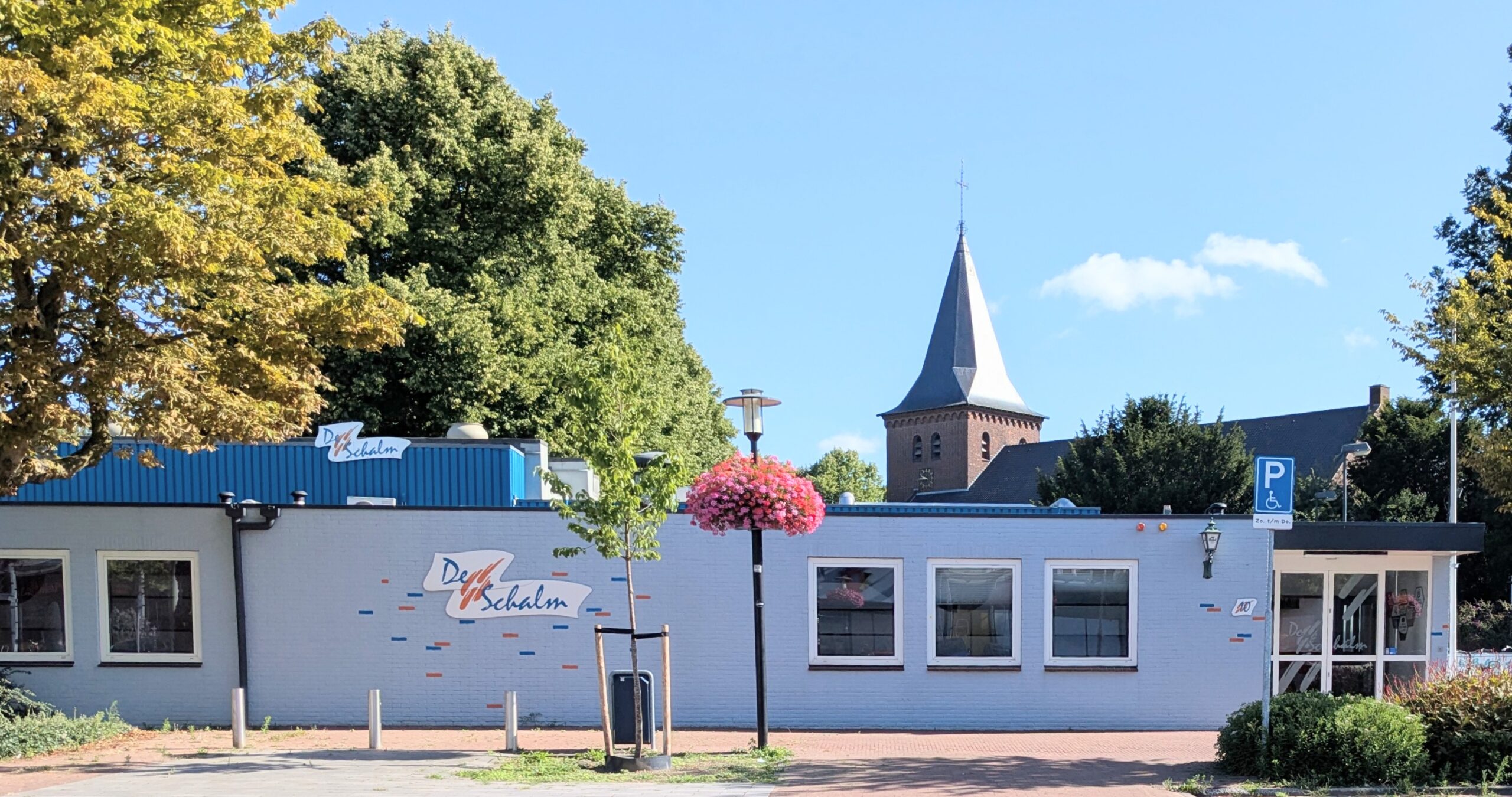Op het parkeerterrein direct voor de ingang van De Schalm zijn 2 parkeerplaatsen voor mindervaliden.
